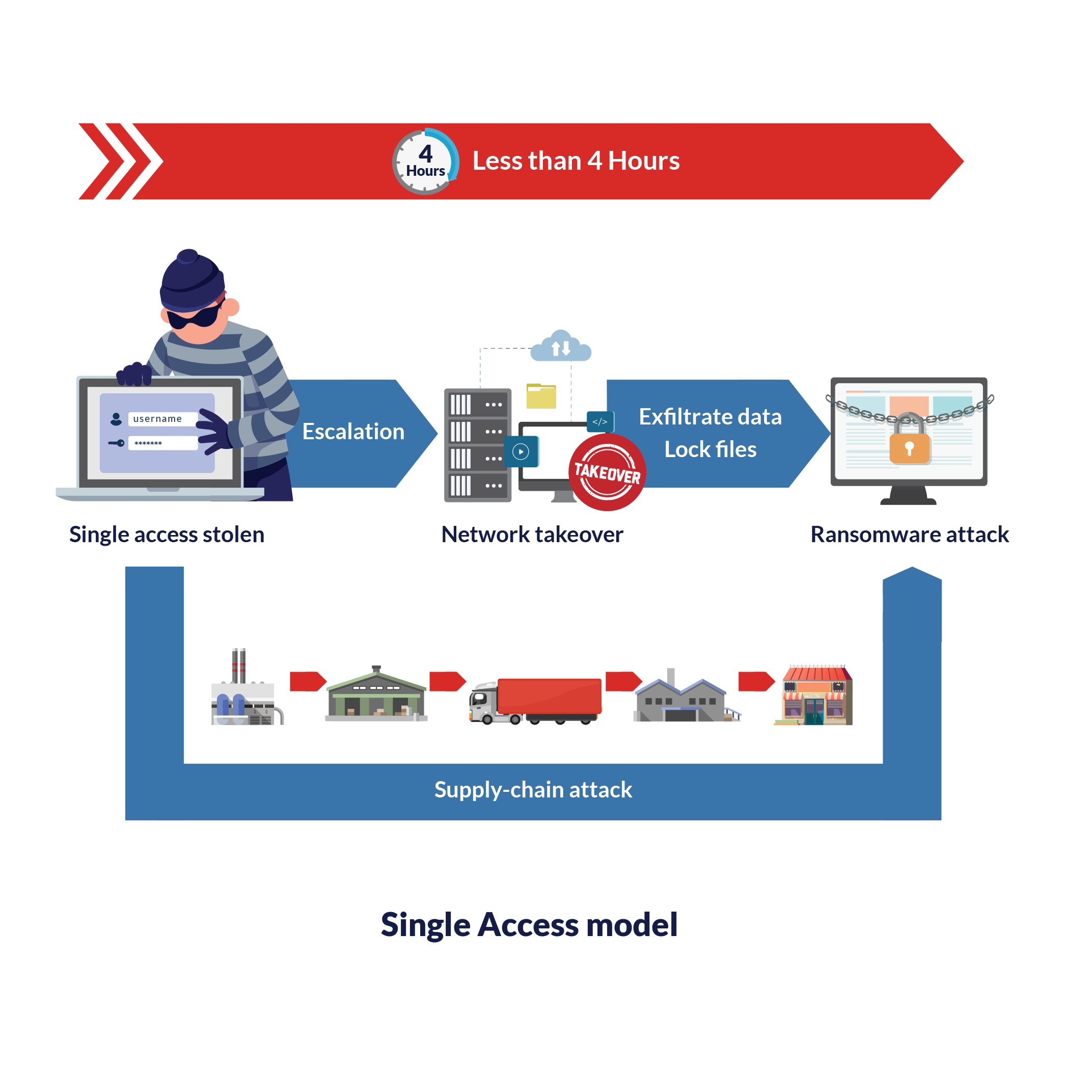 Attackers steal login details to access systems and data.