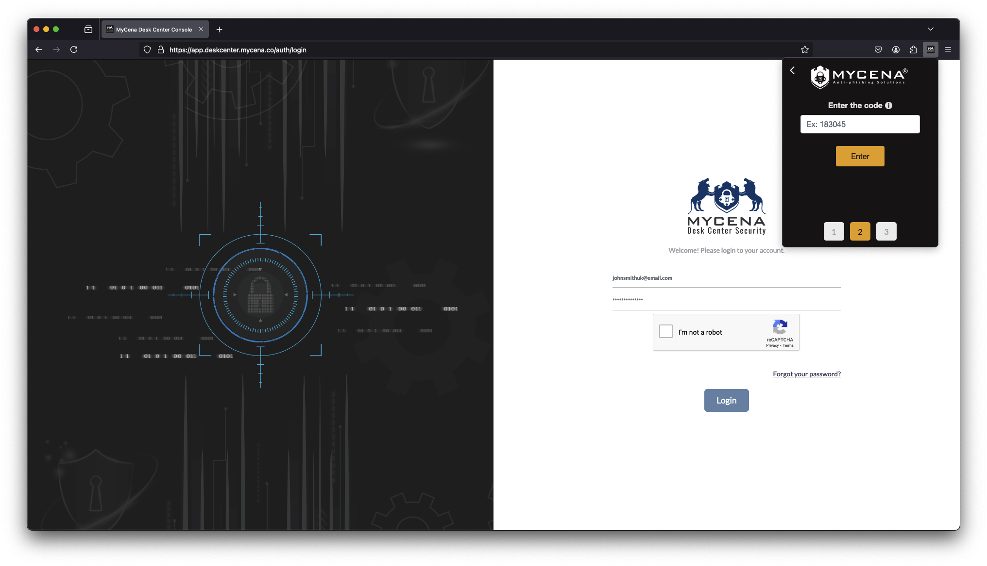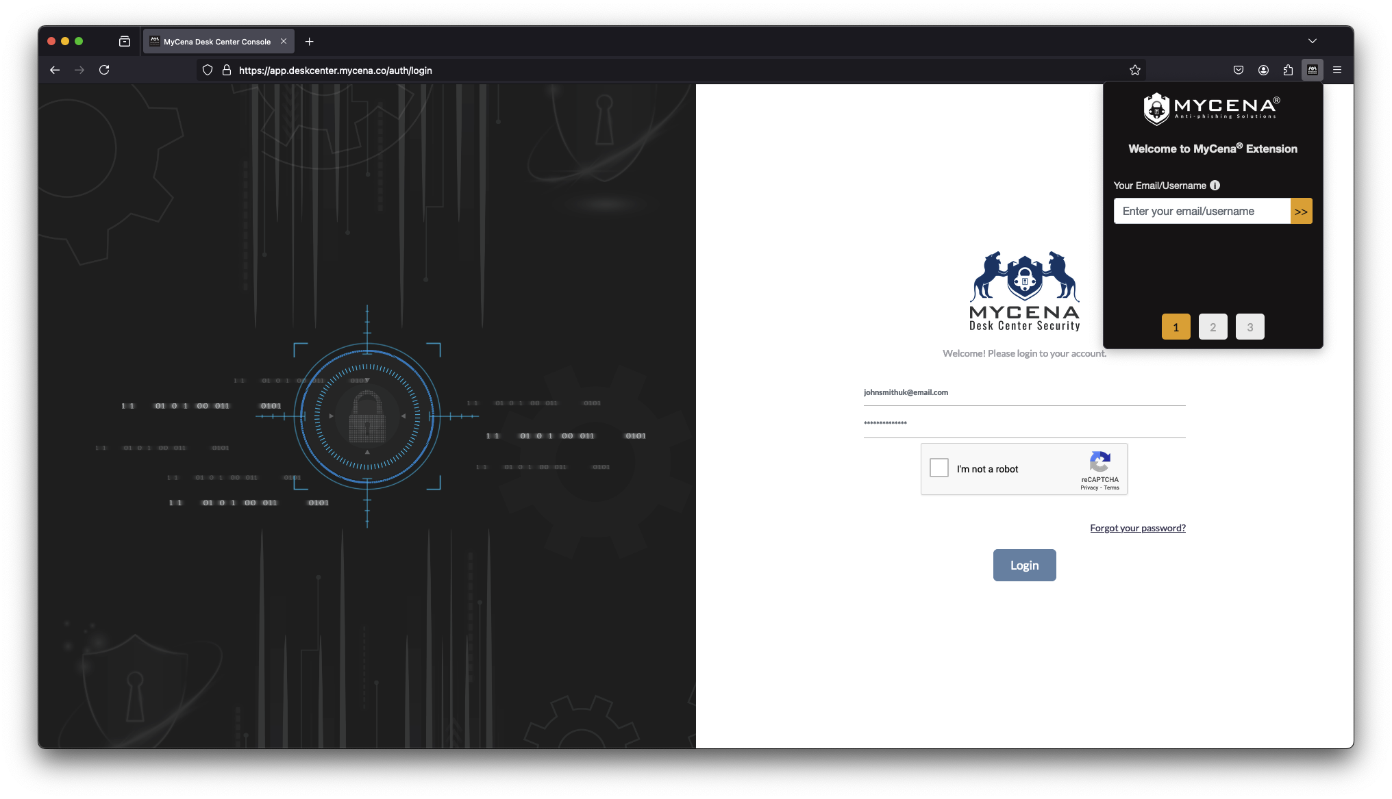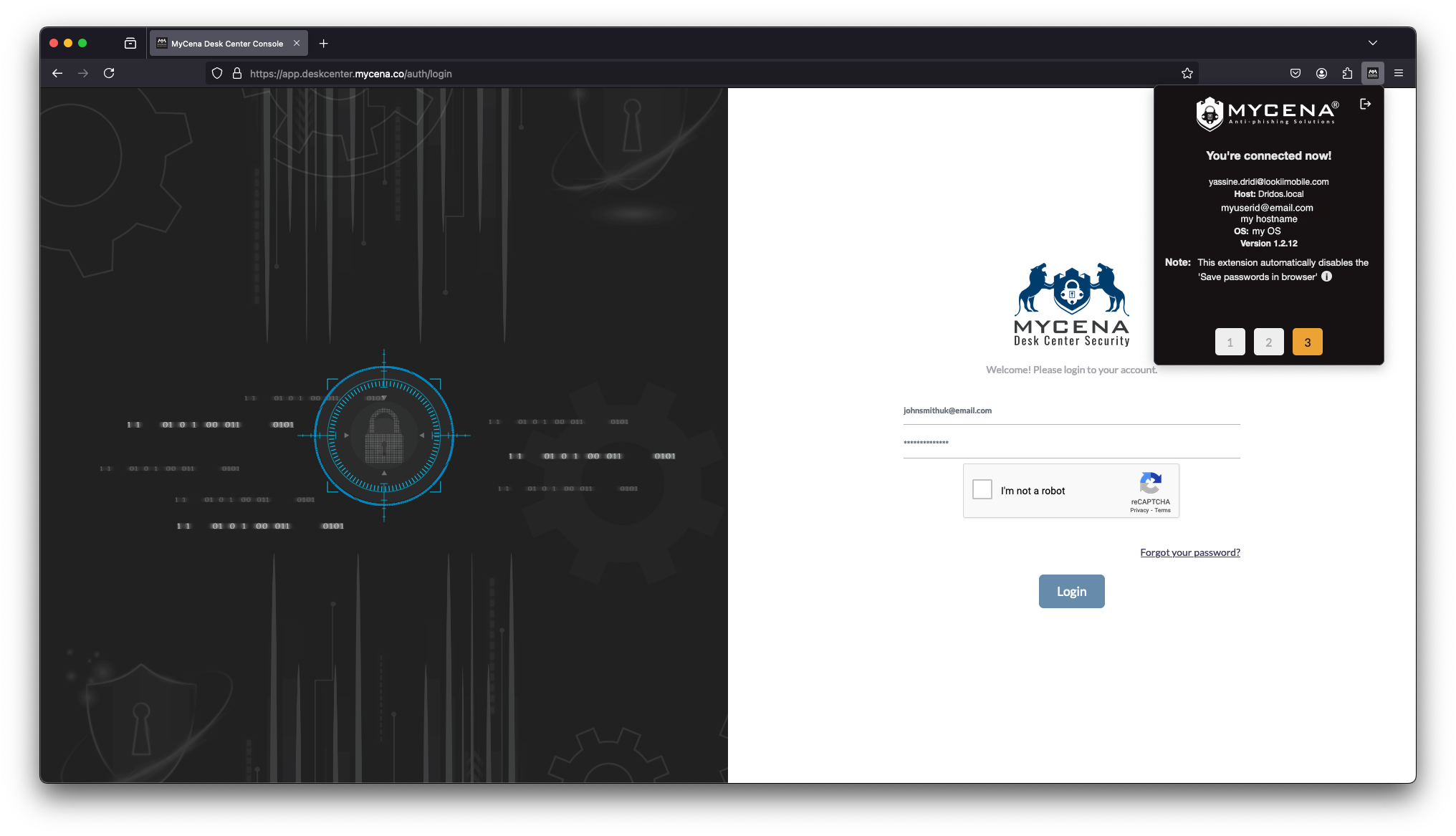 L'extension Web MyCena® Desk Center vous permet de saisir en toute sécurité les informations d'identification de votre application MyCena® Desk Center .