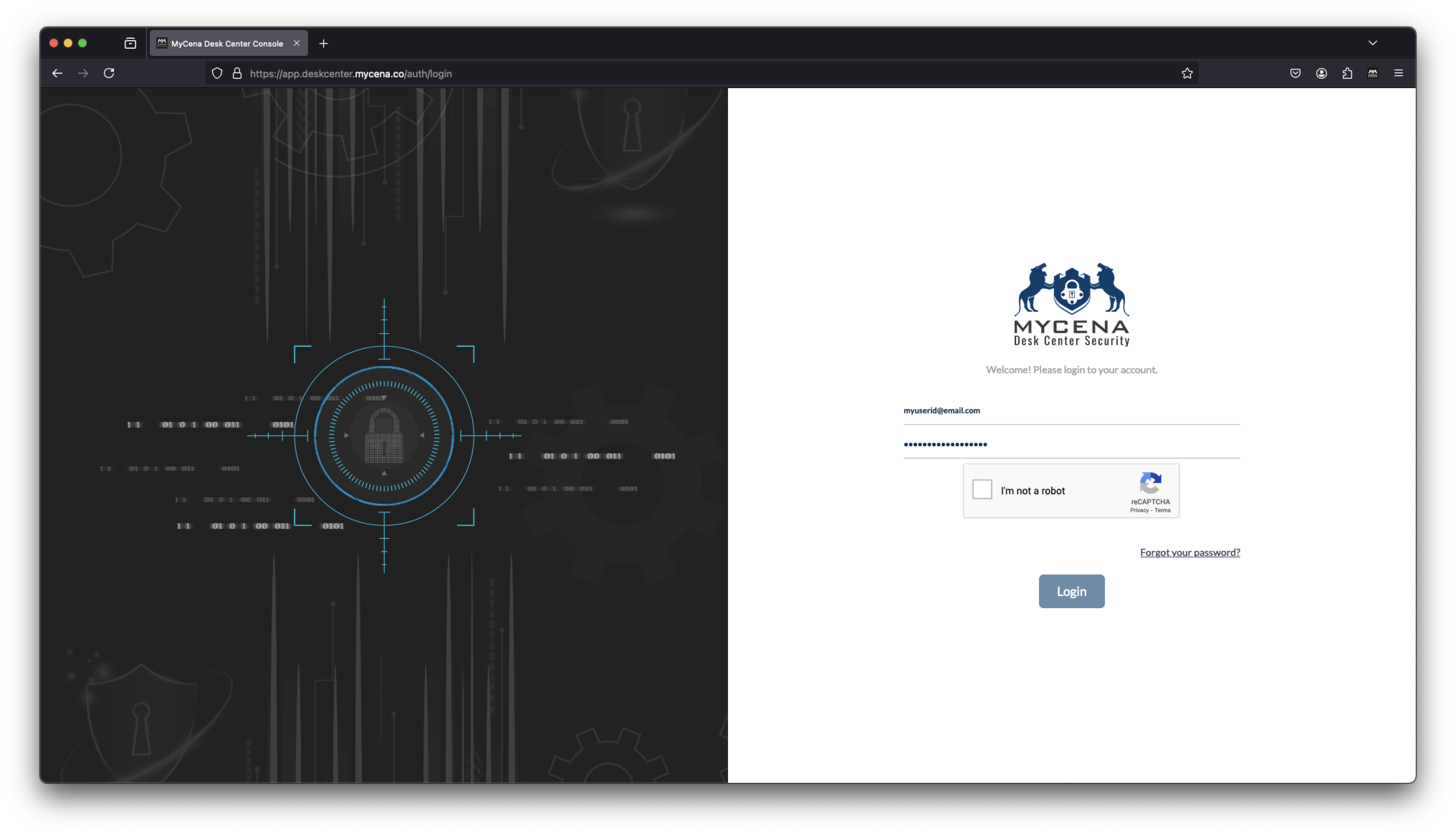The MyCena® Desk Center web extension allows you to securely fill credentials from your MyCena® Desk Center Application.
